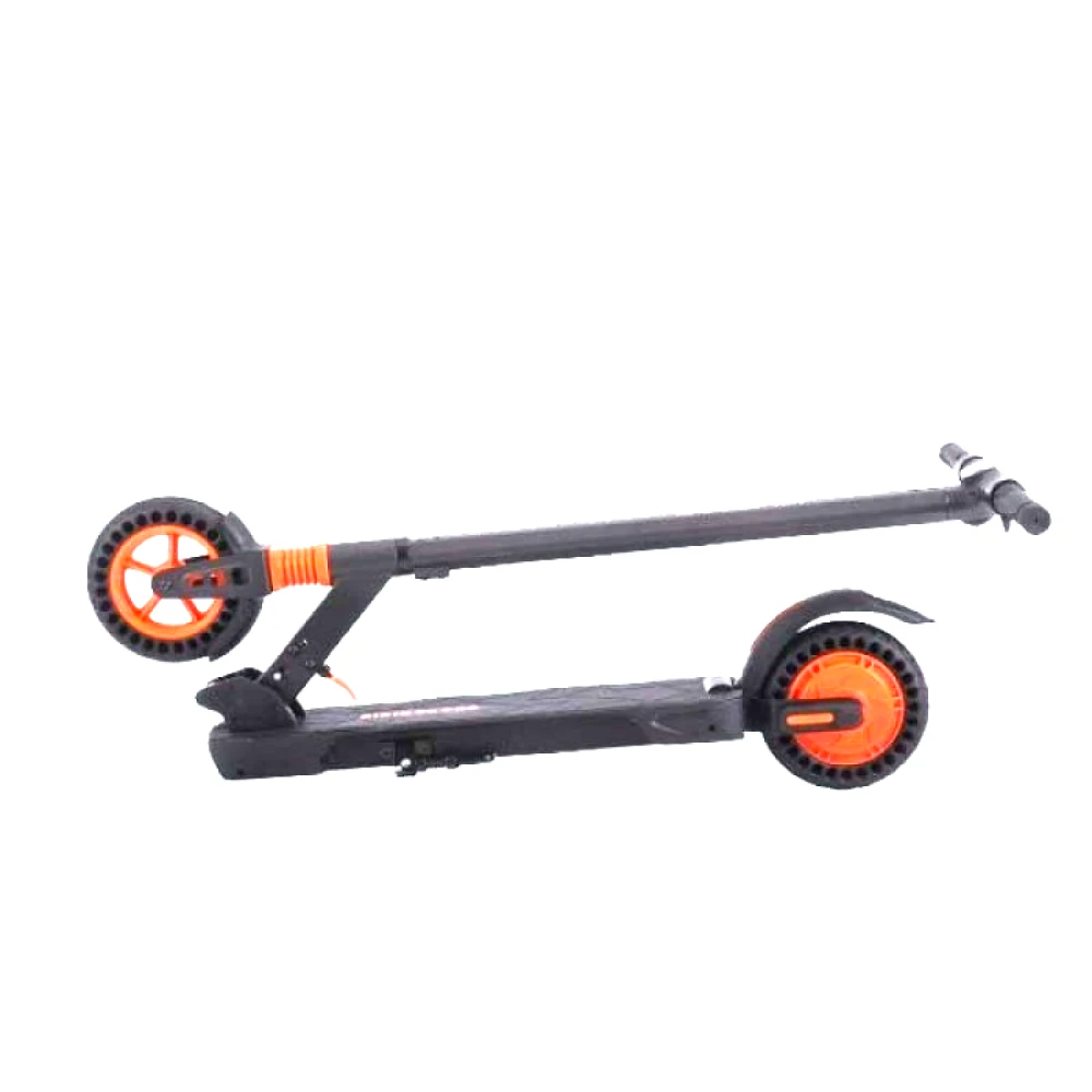Крепкий корпус из алюминия выдержит нагрузку до 120 кг. Небольшая масса 14,5 кг и высота 108 см позволяет легко сложить и перенести самокат. Самокат оборудован стильными и прочными колёсами с оранжевыми элементами, диаметром переднего и заднего колеса 8 дюймов. Благодаря наличию амортизаторов поездка по городу, несмотря на несовершенства дороги, будет плавной и мягкой. Электронная тормозная система уменьшит расход электроэнергии и сохранит на более долгое время тормозные колодки.