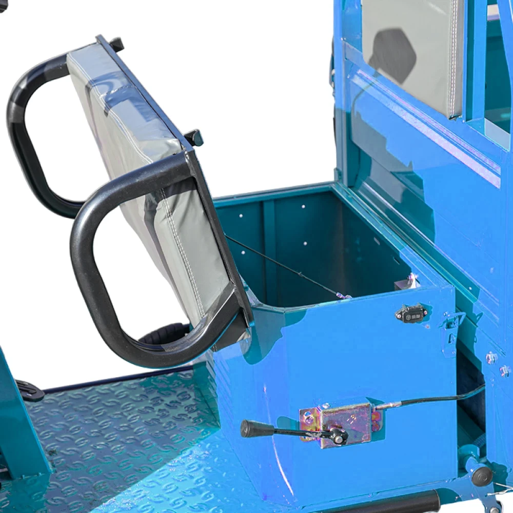Синий цвет электротрицикла Rutrike Амулет 1100 60V650W добавляет ему эстетическую привлекательность и привлекает внимание окружающих. Большой багажный отсек позволяет удобно размещать и перевозить грузы, обеспечивая функциональность и практичность.