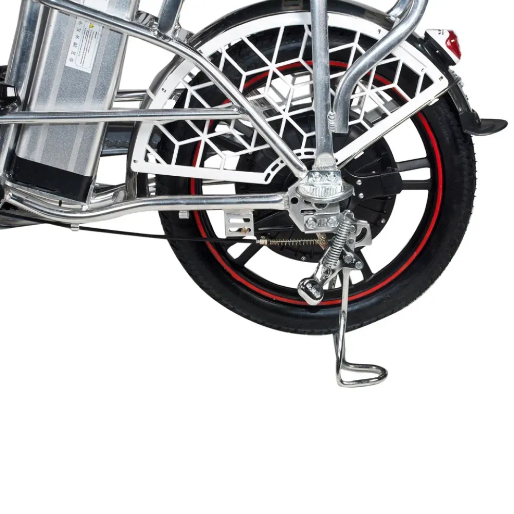 Рама электровелосипеда низкая, изготовлена из прочного алюминия. АКБ размещено в боковое части, от сидения, не мешает при движении. Наличие передней корзины и удобное подножки увеличивает сферу применения электровелосипеда. Техника удобна не только для активного время провождения, но и поездок в магазин. Проблем с парковкой не возникает. Для покупки тс сейчас предлагаем связаться с нами в онлайн-чате или позвонить по телефону.