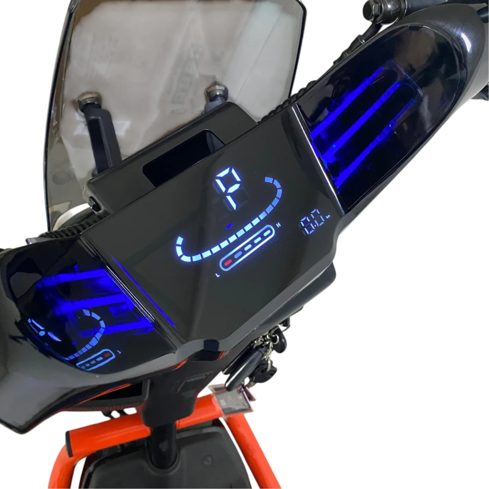 • Мощность 1000 Вт обеспечивает уверенный набор скорости до 50–55 км/ч (в зависимости от настроек и режимов) и позволяет ездить без перегрузки на склонах и при полной нагрузке (водитель + груз в кофре).