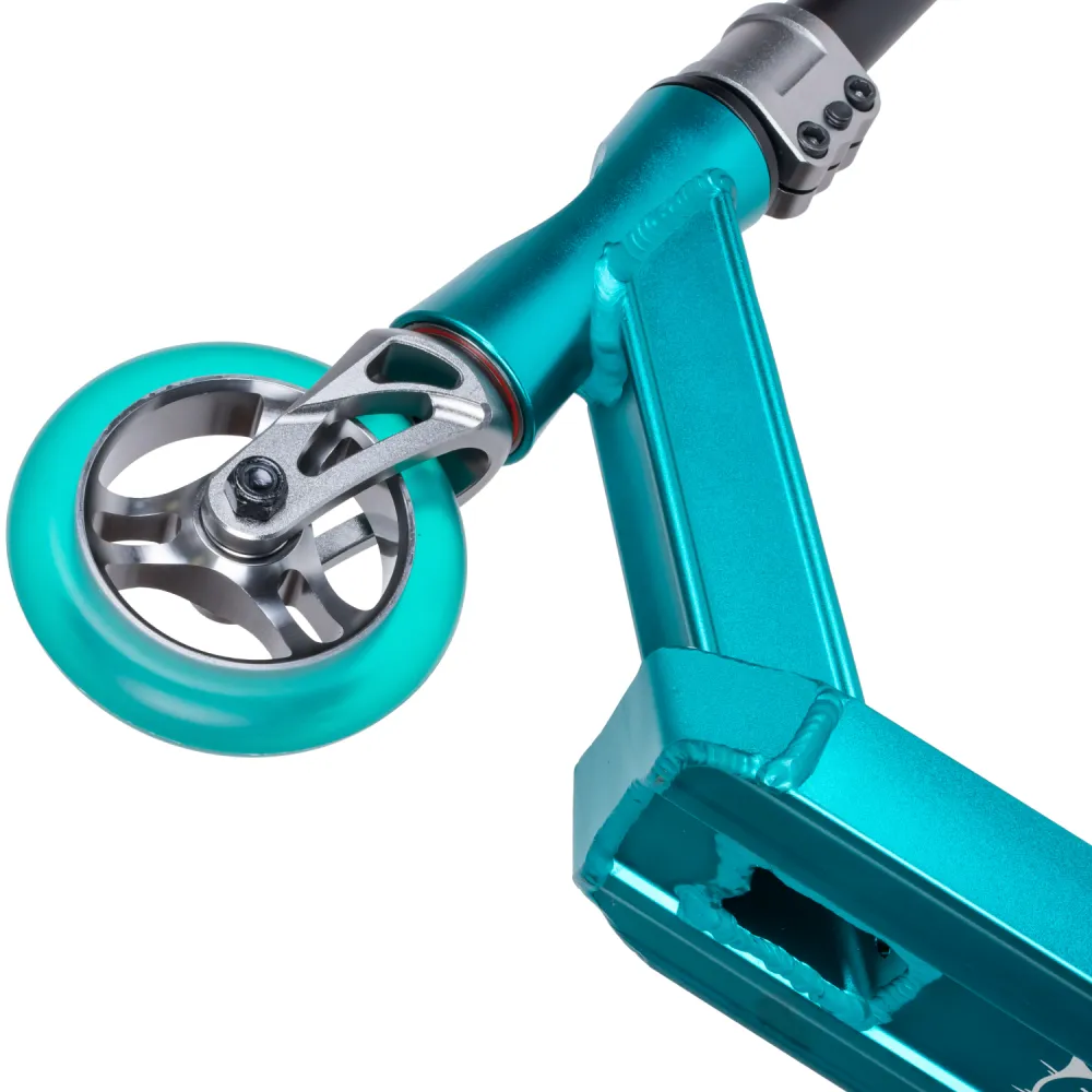 Трюковой самокат TechTeam RAGTAG MINI черно-бирюзовый – предназначен для райдеров, понимающих высокое качество прыжков и маневрирования. Купить модель по цене производителя, миновать посредников и большие надбавки поможет сотрудничество с нашим интернет-магазином.